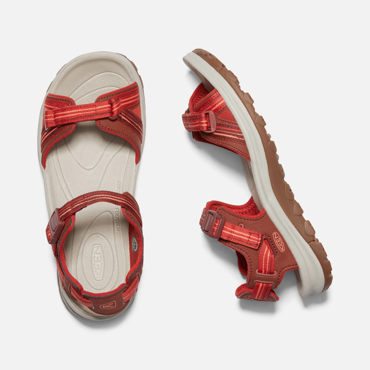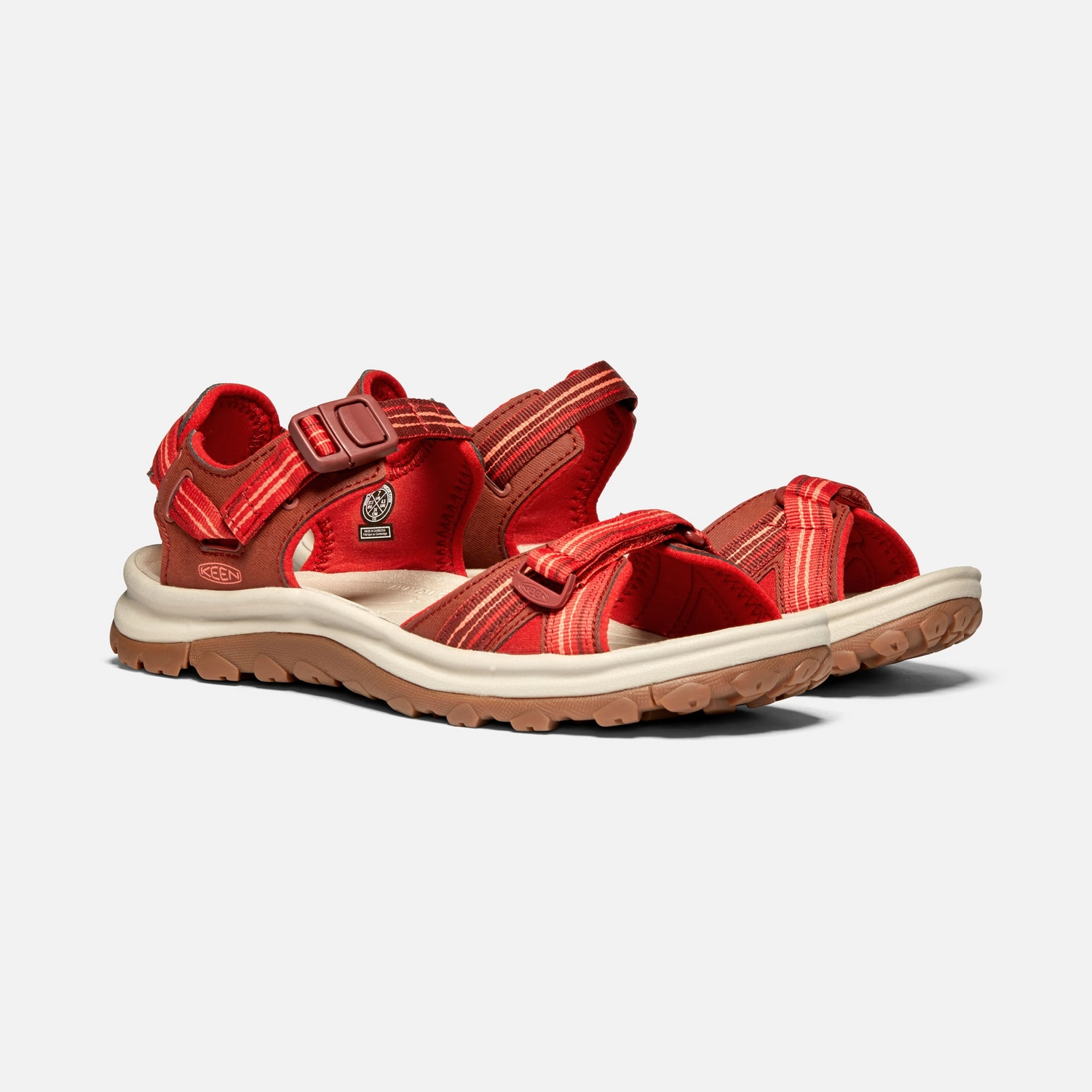 Deze vrouwelijke open-toe sandalen komen uit de serie Terradora II van het merk Keen. Deze sandalen bieden comfort de hele dag door. Ze zijn water resistent en hebben een sneldrogende voering. Met deze schoenen maakt het niet uit welk pad u bewandeld, ze zijn geschikt voor alle terreinen. De EVA rubberen zool bevat flexgroeven die zorgen voor een natuurlijke beweging en bieden stevige grip. Het multidirectionele nokkenpatroon zorgt voor een superieure tractie. De EVA middenzool is dempend en ondersteunt de voetboog. Met deze sandalen aan uw voeten kunt u dus werkelijkwaar alles aan!