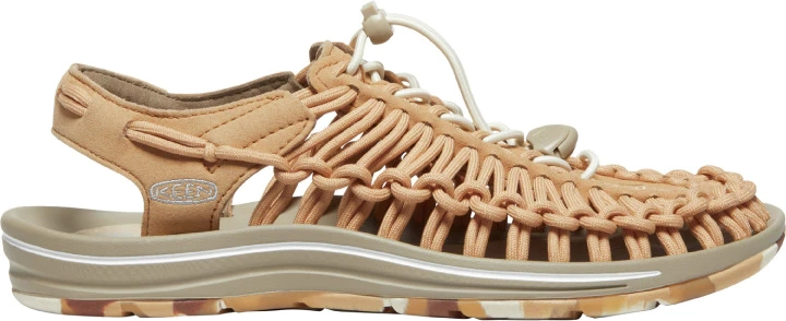 De Uneek Sandaal van het merk Keen is een sandaal met een innovatieve constructie met twee koorden. Hierdoor heeft de sandaal optimale bewegingsvrijheid met een stijlvol ontwerp. De sandaal heeft een ontwerp van gevlochten gerecycled PET koord met een nylon kern, een ademende mesh voering en een handig vetersysteem. Hierdoor is er altijd een stevige en goede pasvorm. De lichtgewicht PU-tussenzool en rubberen buitenzool met hoge tractie zorgen en daarnaast voor dat de sandaal erg duurzaam is en een goede grip heeft. Het anatomische voetbedontwerp zorgt voor optimaal comfort. Als laatste heeft de sandaal Cleansport NXT voor een natuurlijke geurbestrijding.