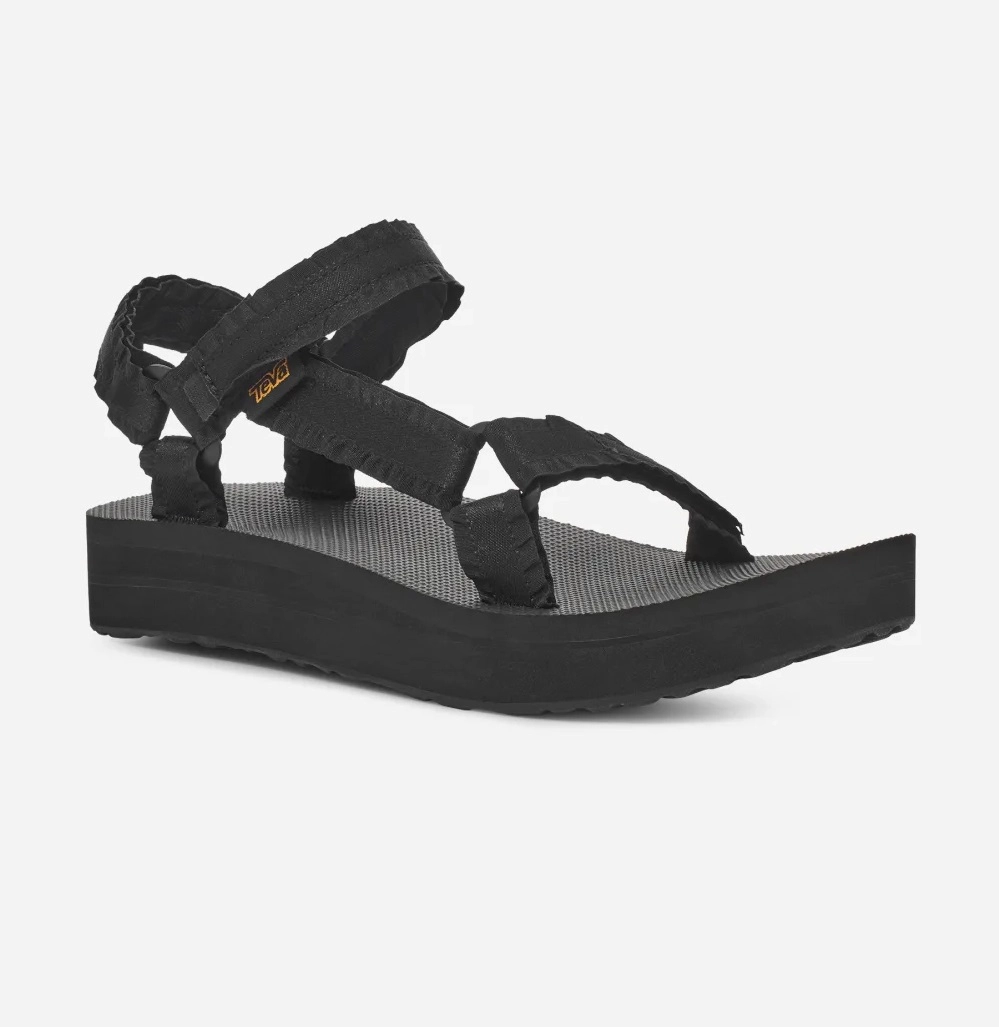 De Teva Midform Universal sandaal is stijlvol en comfortabel. De Adorn versie van de Midform Universal sandaal is afgewerkt met franjes op de bandjes. De sandaal valt op door de fijne bandjes en een dikke rubberen zool. De enkelbanden zijn van textiel en hebben een fijne pasvorm door het universele bevestigingssysteem. De rubberen zool biedt een stevige grip, ook voor natte omstandigheden. Het zachte EVA voetbed werkt dempend en is voorzien van een antibacteriële laag, zodat er zo min mogelijk ongewenste geuren kunnen opkomen.