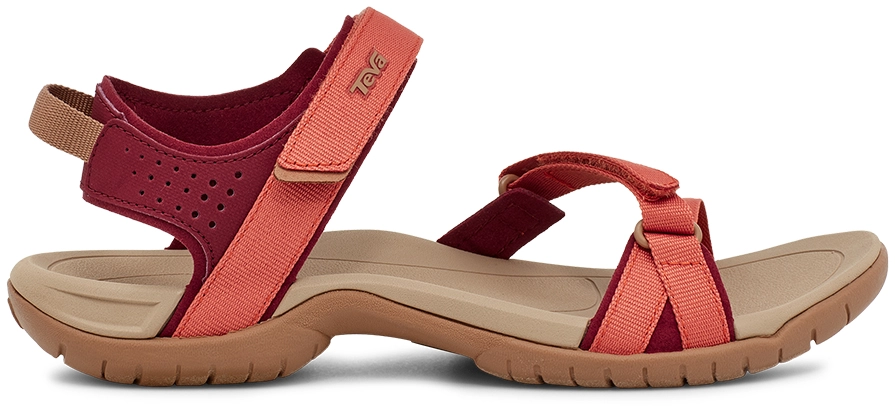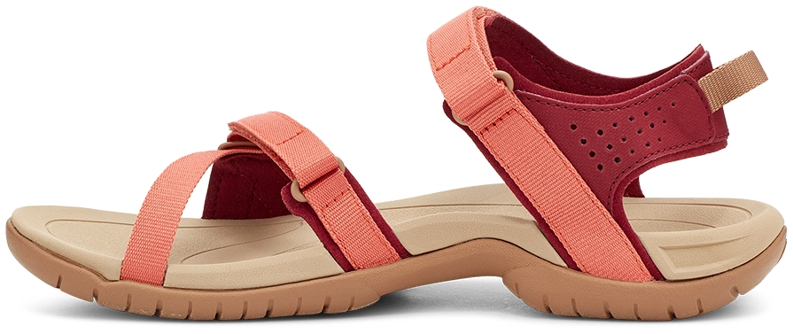 De Verra sandaal van kwaliteitsmerk Teva is uitgerust met een EVA-schuim middenzool en een Spider Original zool voor extra grip op vochtige en ongelijkmatige ondergronden. De Shoc Pads in de hiel zorgen voor een fijne demping tijdens het lopen. De sandaal heeft een Microban Zinc gebaseerde anti-microbiële behandeling waardoor geurtjes zich niet aan de schoen gaan hechten. De bandjes zijn verstelbaar middels klittenband voor een optimaal draagcomfort.