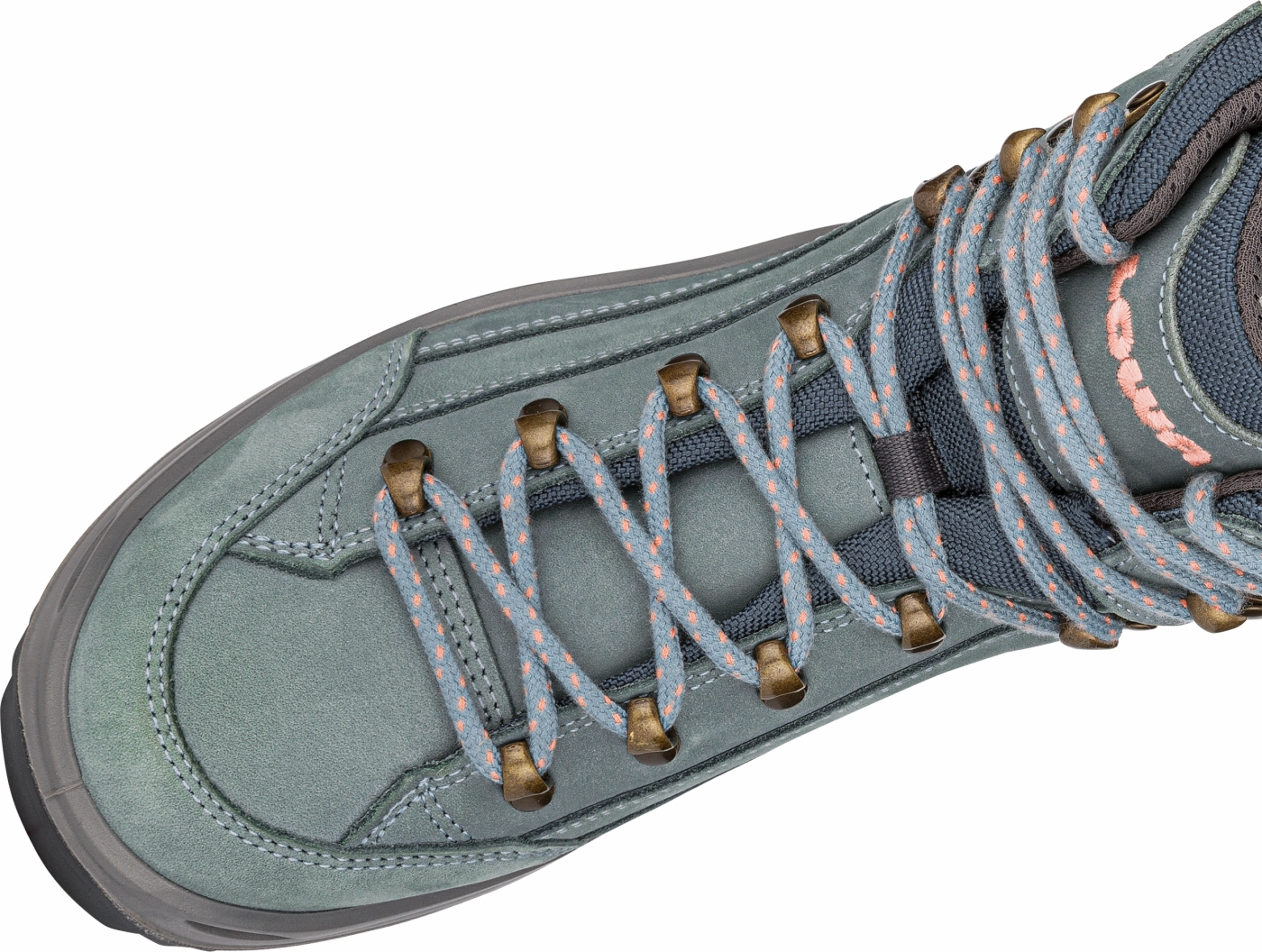 Doordat de Renegade GTX een tweedelige vetersluiting heeft, kunnen de voorvoet en de schacht afzonderlijk van elkaar stevig worden vastgemaakt. Hierdoor kan de schoen individueel worden aangepast aan de anatomie van uw voet en kunt u ze op verschillende manieren veteren voor bergop en bergaf lopen.