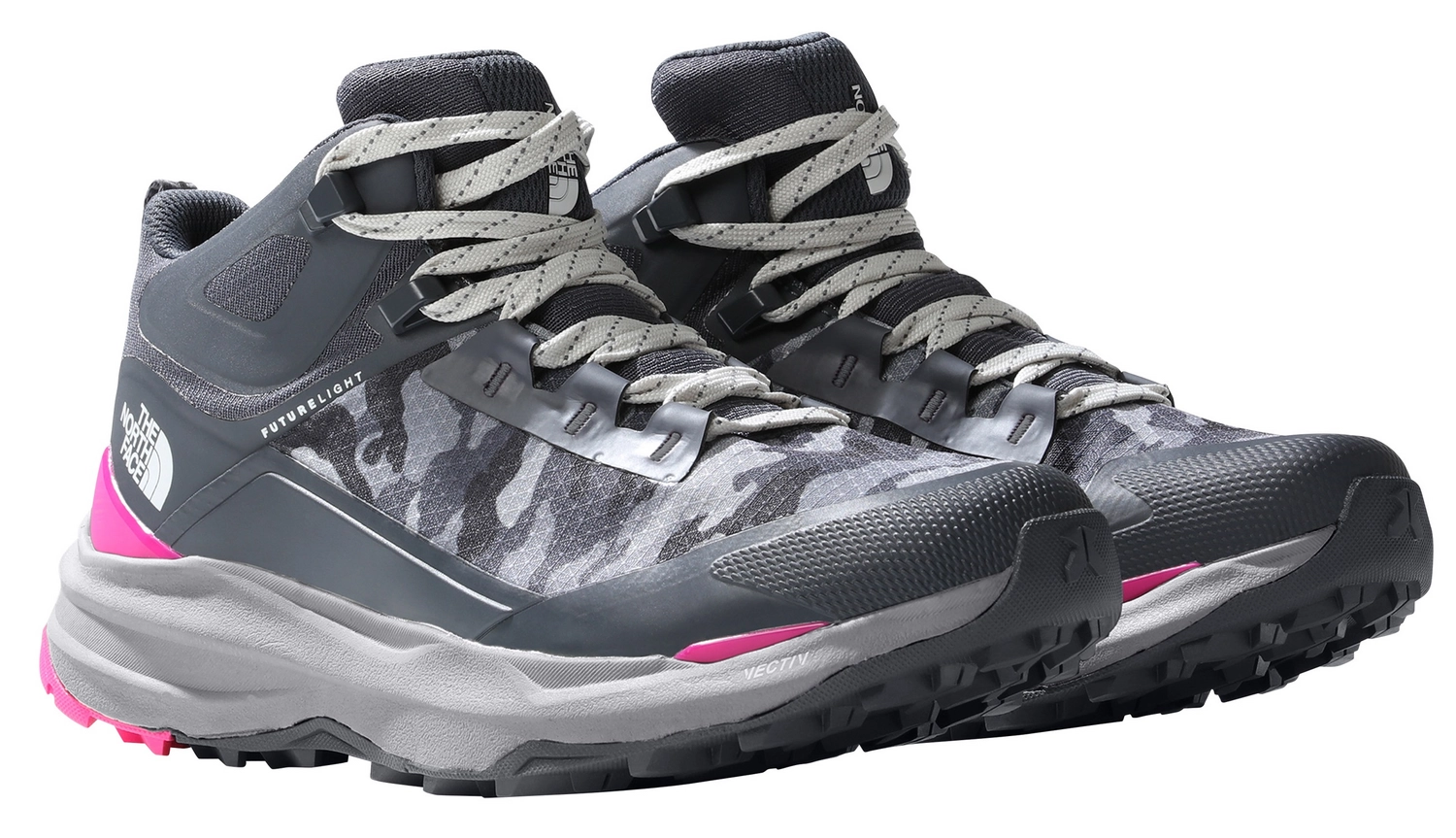 De Wandelschoen The North Face Women Vectiv Exploris 2 Mid Futurelight Vanadis Grey Exploris Camo Print Vanadis Grey is een functionele en stijlvolle wandelschoen voor dames. Deze wandelschoen uit de serie Vectiv Exploris 2 Mid Futurelight van het merk The North Face heeft een zwarte kleur en is gemaakt van textiel. Het ademende en waterdichte FUTURELIGHT membraam zorgt voor extra comfort tijdens het wandelen. De tussenzool is gemaakt van hoogwaardig EVA-schuim en het brede platform onder de voet biedt stabiliteit. De Surface CTRL-rubber buitenzool met profielzool van 4 mm biedt uitstekende grip op alle ondergronden. Dit lage model wandelschoen valt in categorie A en is geschikt voor dames.